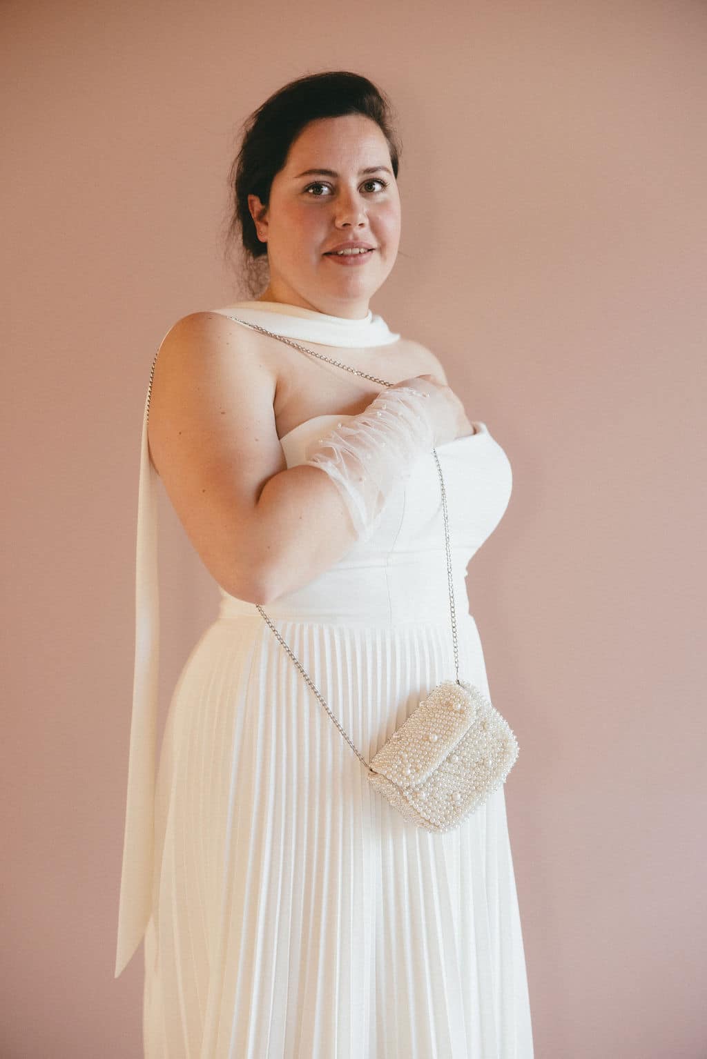 Its refined design and silver chain add a touch of chic that will perfectly complement your outfit on your big day. Versatile, it’s just as easy to wear after the event—whether for an evening out or a night on the town—to elegantly complete your look.