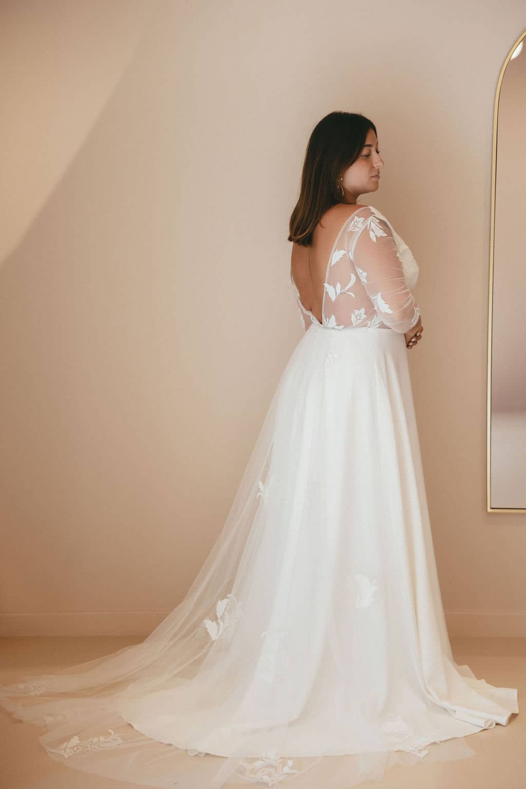 ¡Nuestros vestidos son 100 % a medida y aptos para todas las mujeres! No olvides indicar tu talla cuando conciertes una cita, para que podamos preparar tu visita y ofrecerte vestidos hasta la talla 46/48 en la prueba. Por supuesto, podremos adaptar cada vestido a tu complexión.