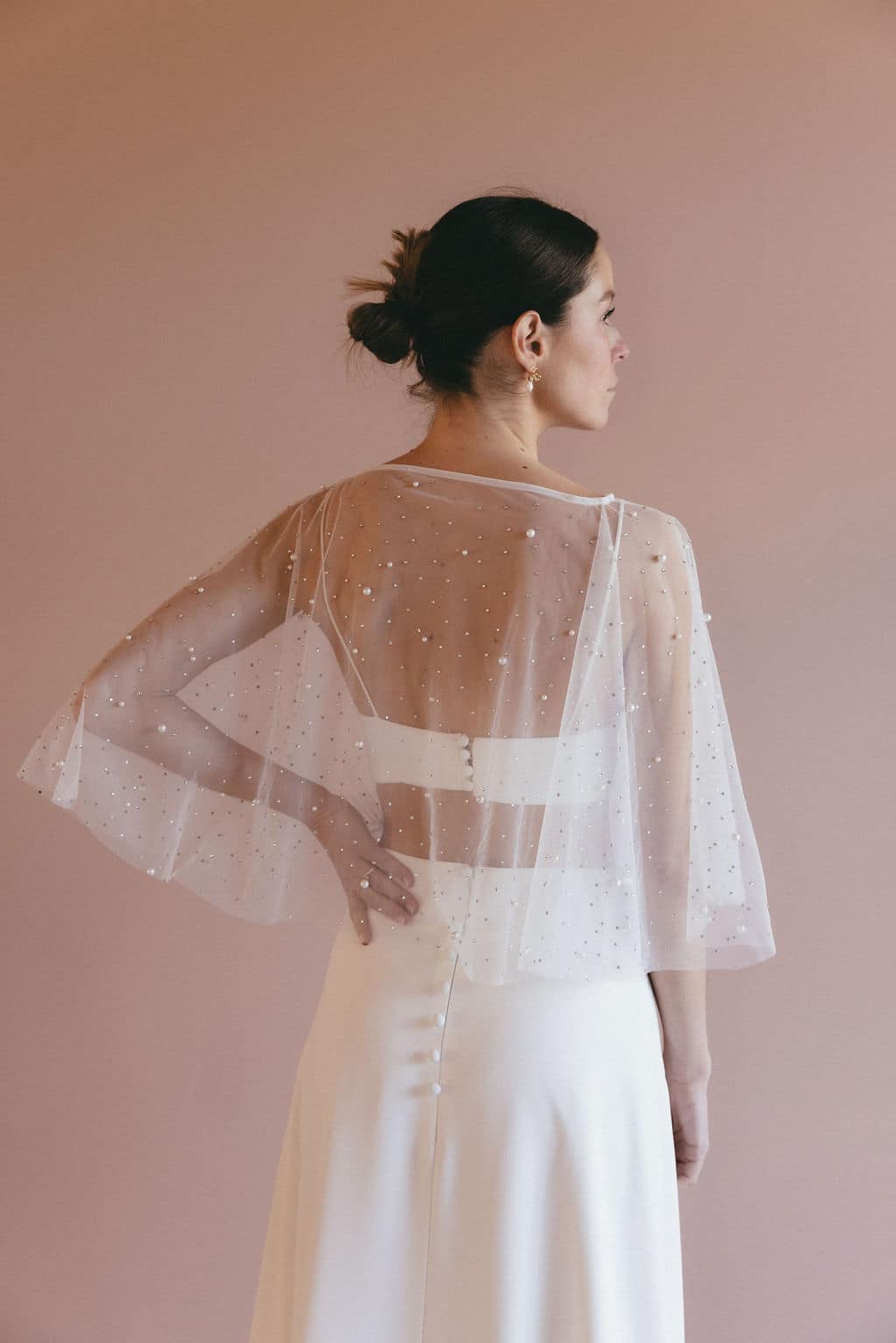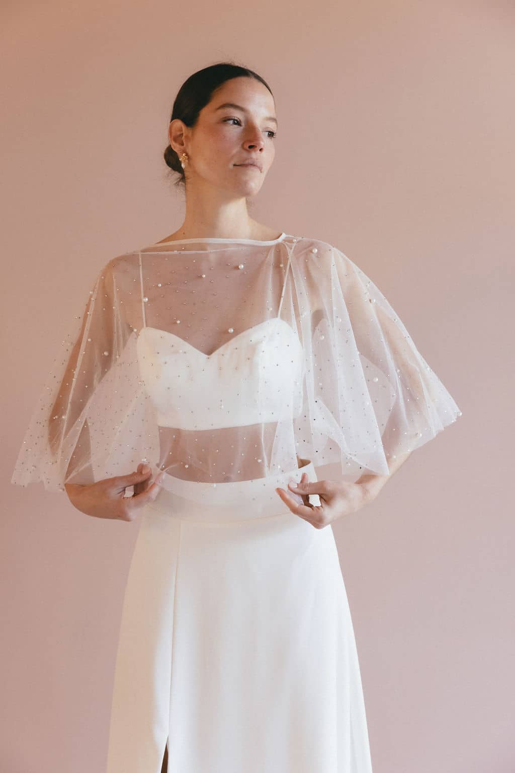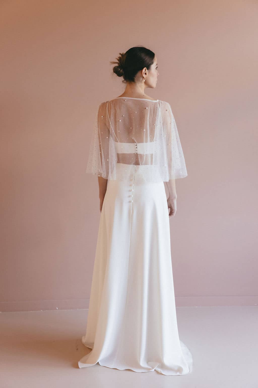 Descubre nuestro vestido de novia a medida Louison de tres piezas, una joya de la colección 2025.