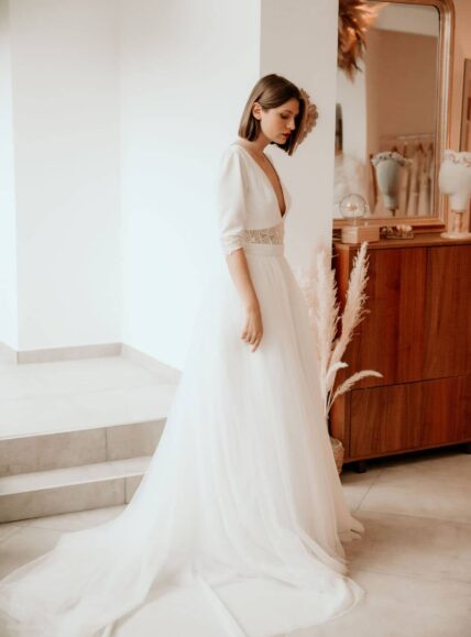 La falda exterior desmontable te permitirá añadir volumen a tu vestido y crear dos looks con un solo vestido.