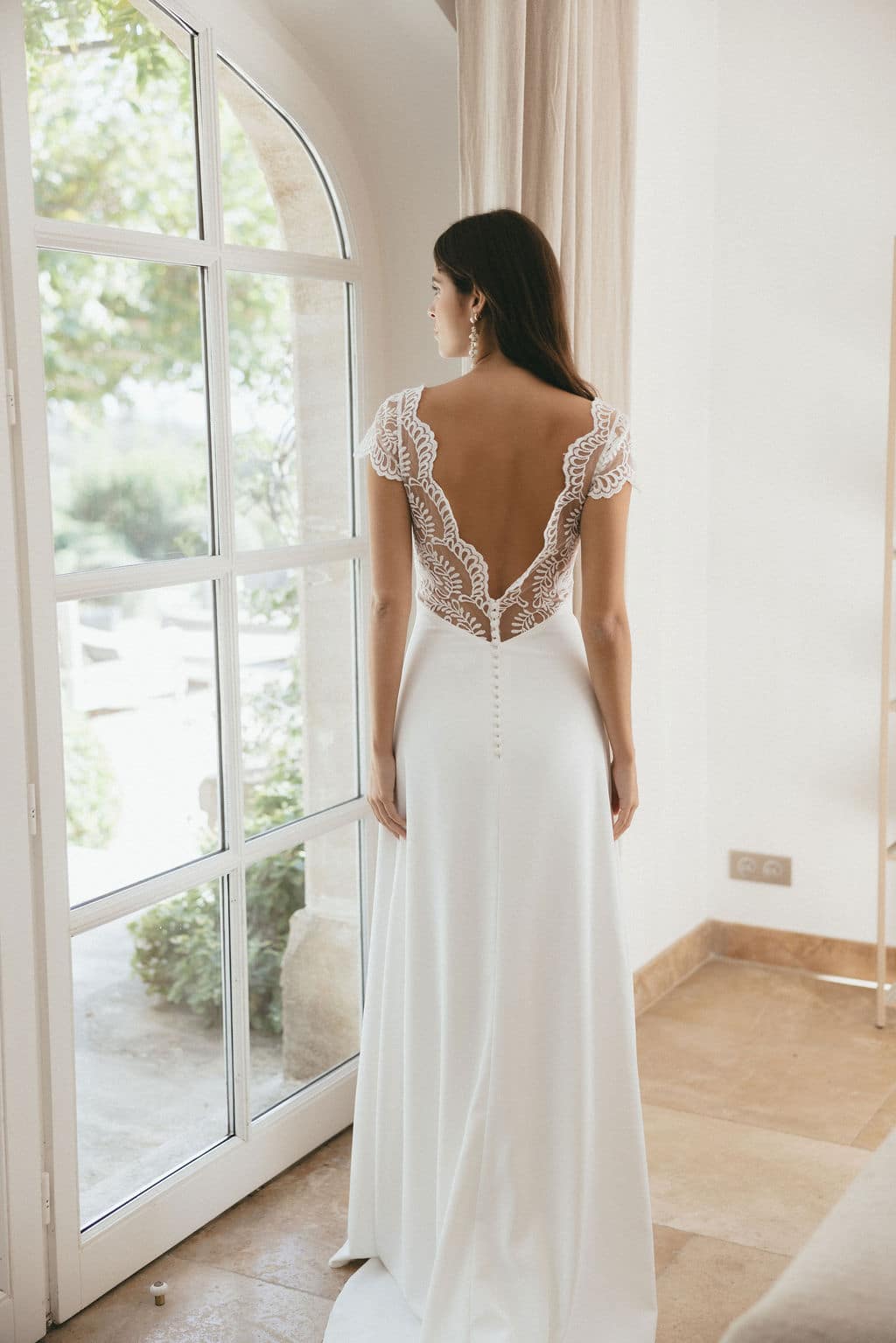 Ce qu’on adore : son dos nu en dentelle festonnée.